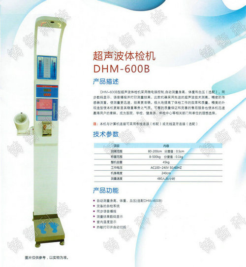 身高體重秤測量:測量身高,采用超聲波測高,無接觸測高,防止交叉感染,適體檢使用,使手動不可比擬的。