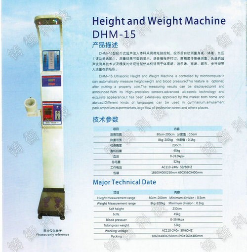 我們公司銷售的 快速測量身高體重標準人體秤,藥店門口投幣體重稱簡稱體重秤,體檢秤。體重秤采用當今國外流行的簡潔、大方、時尚的設計概念,外形新穎,美觀大方,改變了傳統身高體重秤的笨重形象!其外觀豪華,無論您是放在學校、賓館、醫院、洗浴中心、或是酒店,都將會成為一個吸引眼球的新亮點!歡迎對我們公司的體重秤感興趣的客戶隨時點擊這里致電我們銷售進行購買!