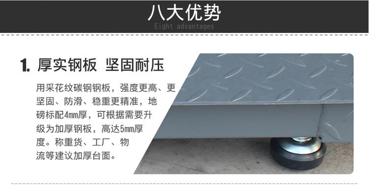 2、地磅秤材質為:碳鋼,防滑咬花型臺面設計;