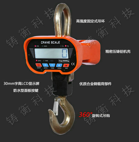 此款電子吊秤外表面全鍍鎳,防銹防腐蝕,還有防火、防爆型可選。