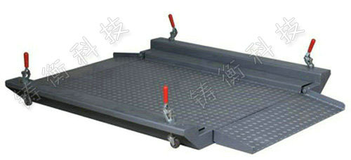 結(jié)構(gòu)上容易拆卸、運(yùn)輸,裝配在地面的臨時(shí)或簡(jiǎn)易基礎(chǔ)上的地磅秤。
